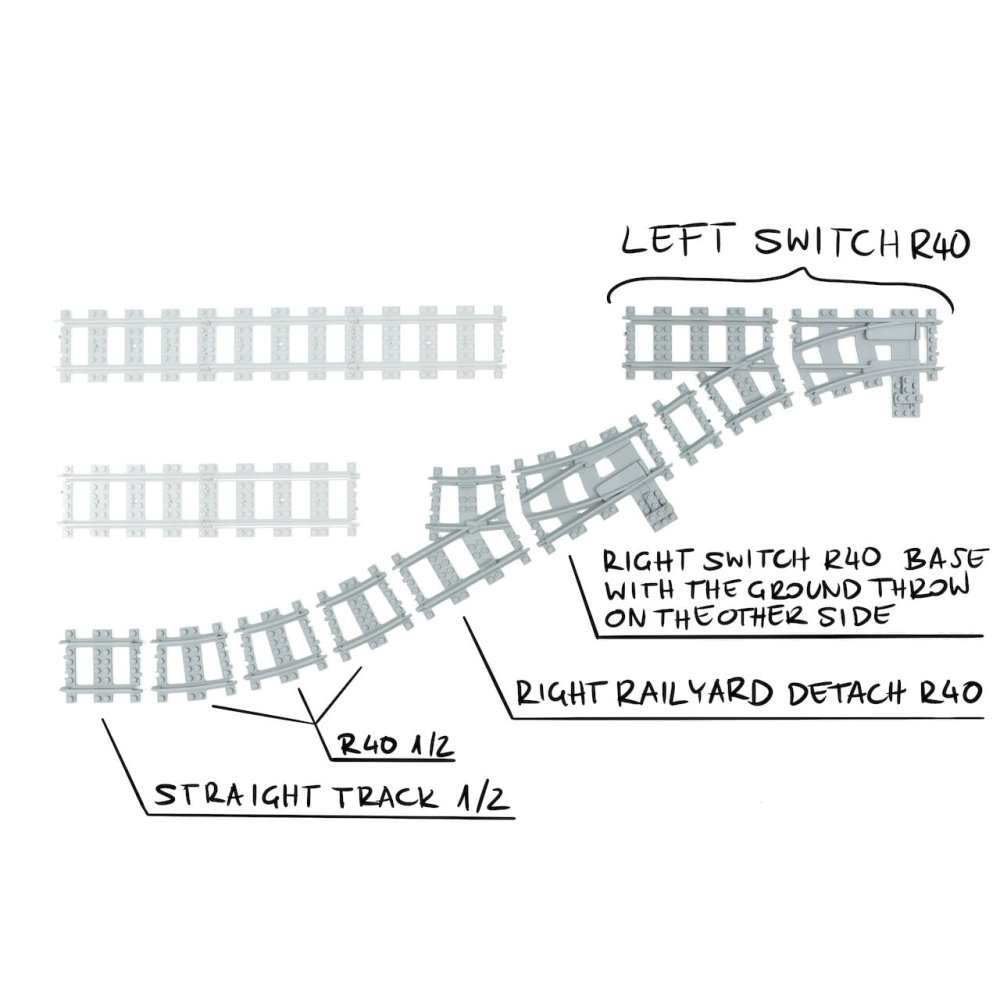 De R40 Railyard wissels zijn in de basis normale R40 wissels met de uitzondering dat het 'detach' part (waar de trein de wissel verlaat) een korter rechte stuk heeft en dat de wisselschakelaar aan de andere kant zit.
