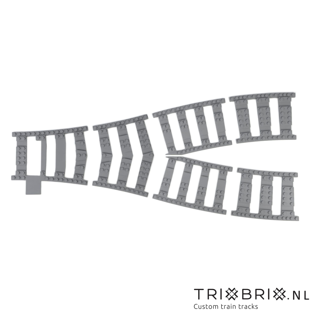 R104 is de afstand gemeten vanaf het midden van de cirkel tot aan het midden van de rails. Daarmee gebruik makende van de LEGO® stud als eenheid. Een LEGO® stud is 8mm(breedte en lengte van een 1x1 steen). De ruimte benodigd voor een volledige R104 cirkel kan uitgerekend worden middels de volgende formule: (104 + 4) * 2 * 8mm = 1728mm = 1.73m.(R + 4) * 2 * 8mm