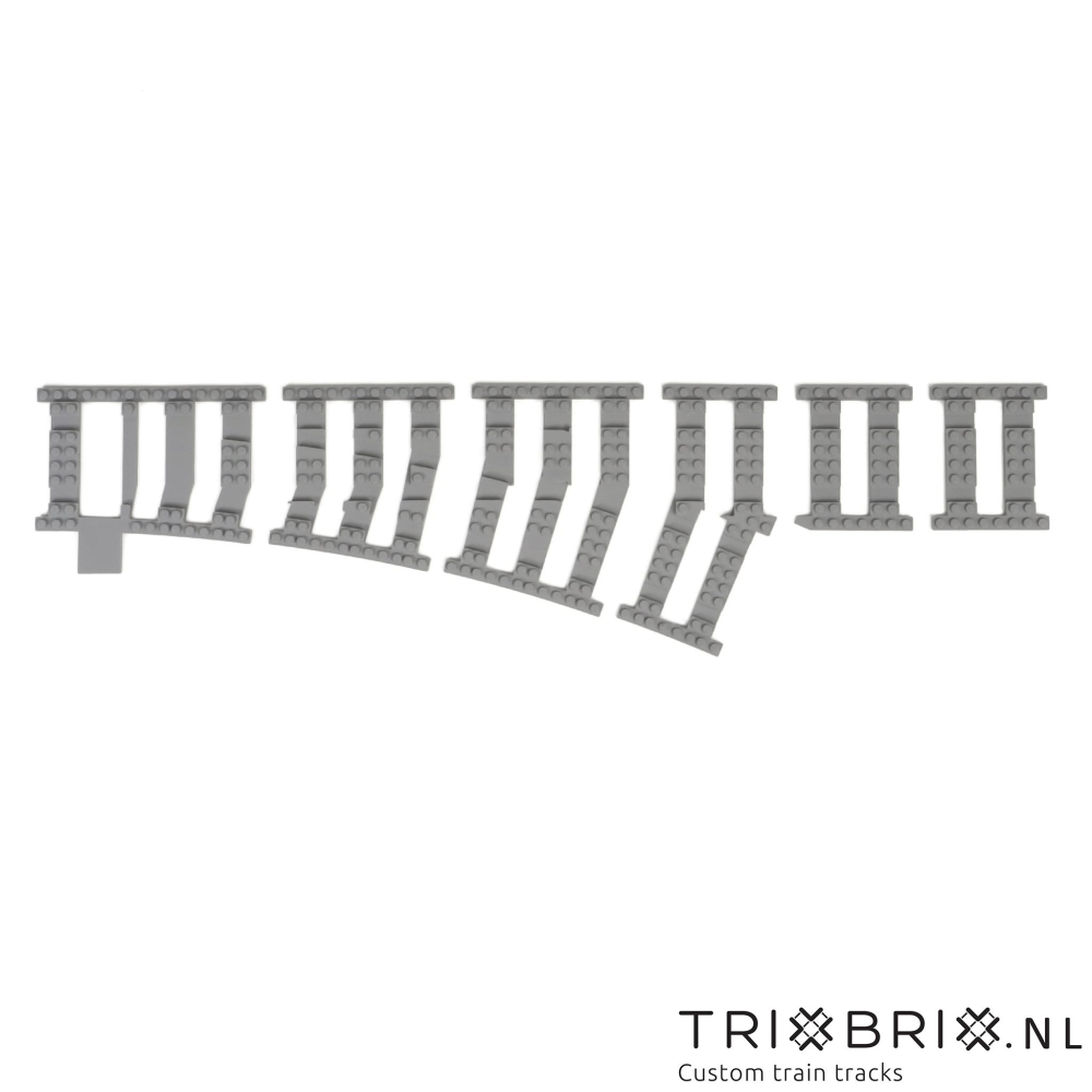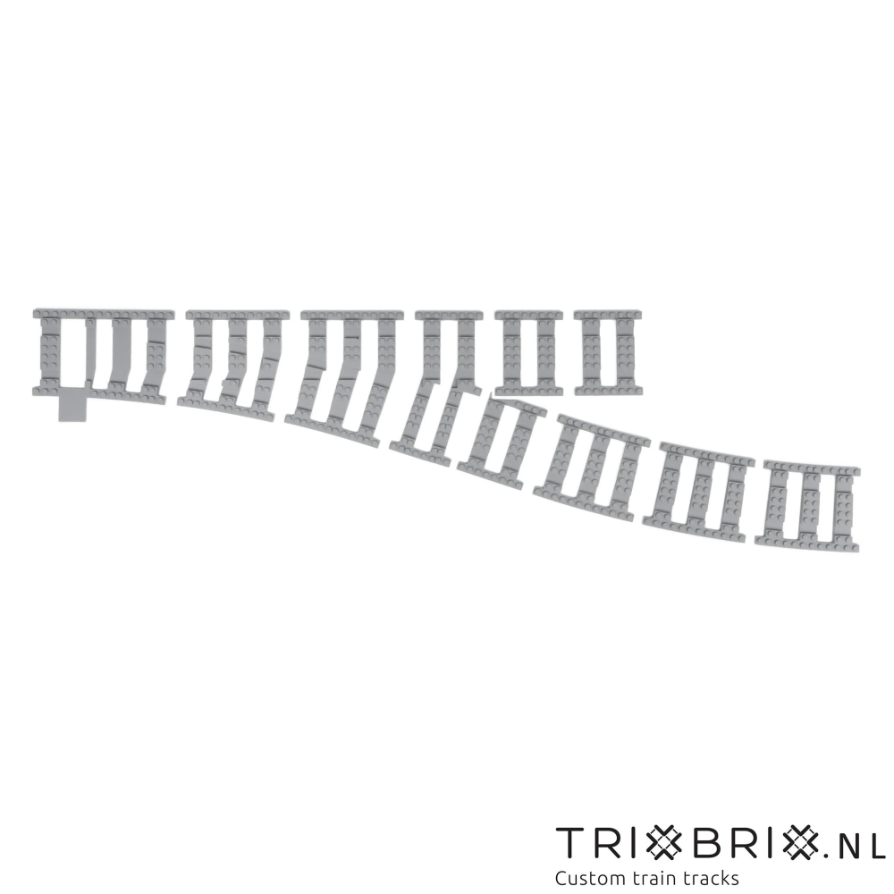 R120 is de afstand gemeten vanaf het midden van de cirkel tot aan het midden van de rails. Daarmee gebruik makende van de LEGO® stud als eenheid. Een LEGO® stud is 8mm(breedte en lengte van een 1x1 steen). De ruimte benodigd voor een volledige R120 cirkel kan uitgerekend worden middels de volgende formule: (120 + 4) * 2 * 8mm = 1984mm = 1.98m.(R + 4) * 2 * 8mm