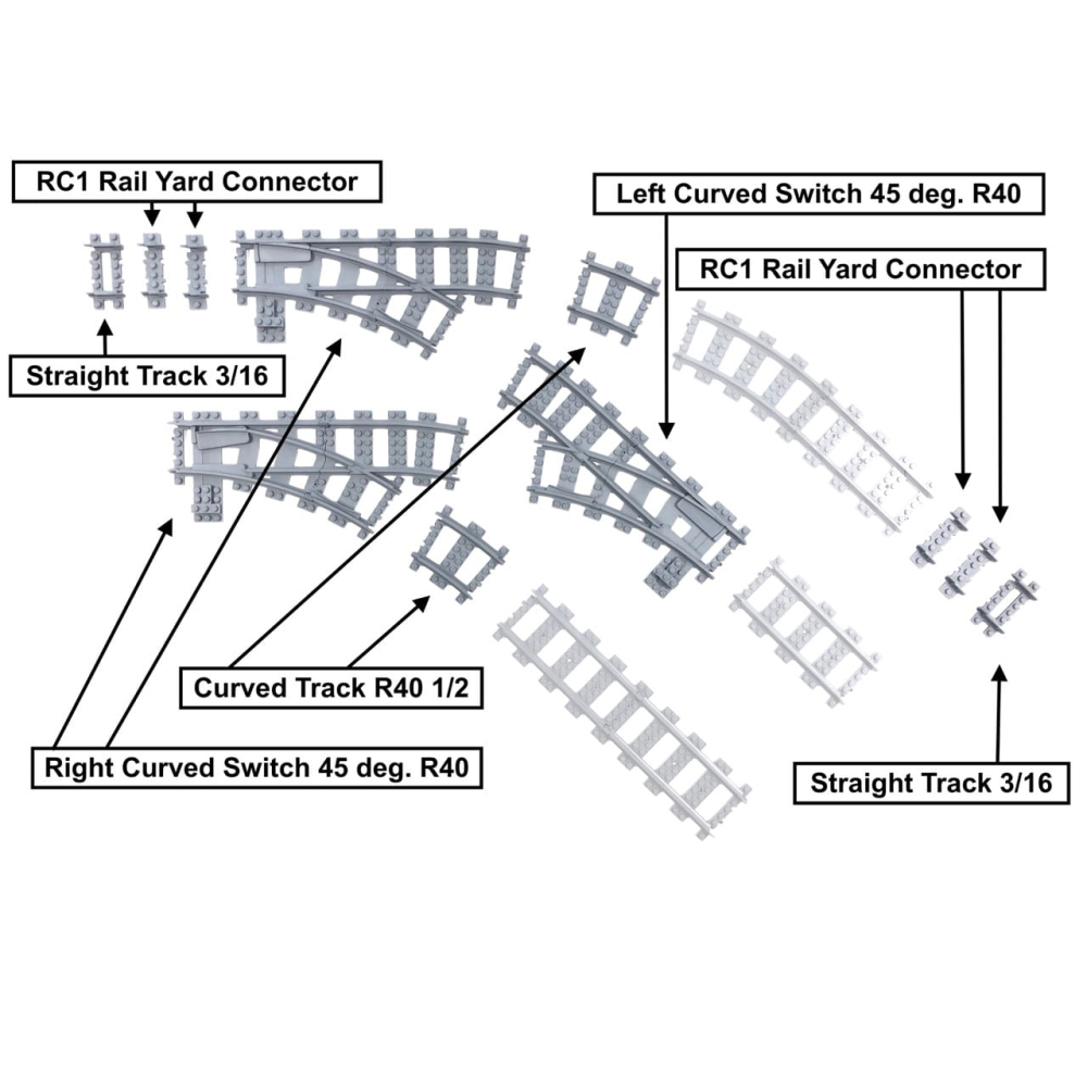Met deze sets verkrijg je wissels in een bocht. Iets dat de layout aanzienlijk kleiner maakt en dat kan erg handig zijn bij beperkte ruimte.