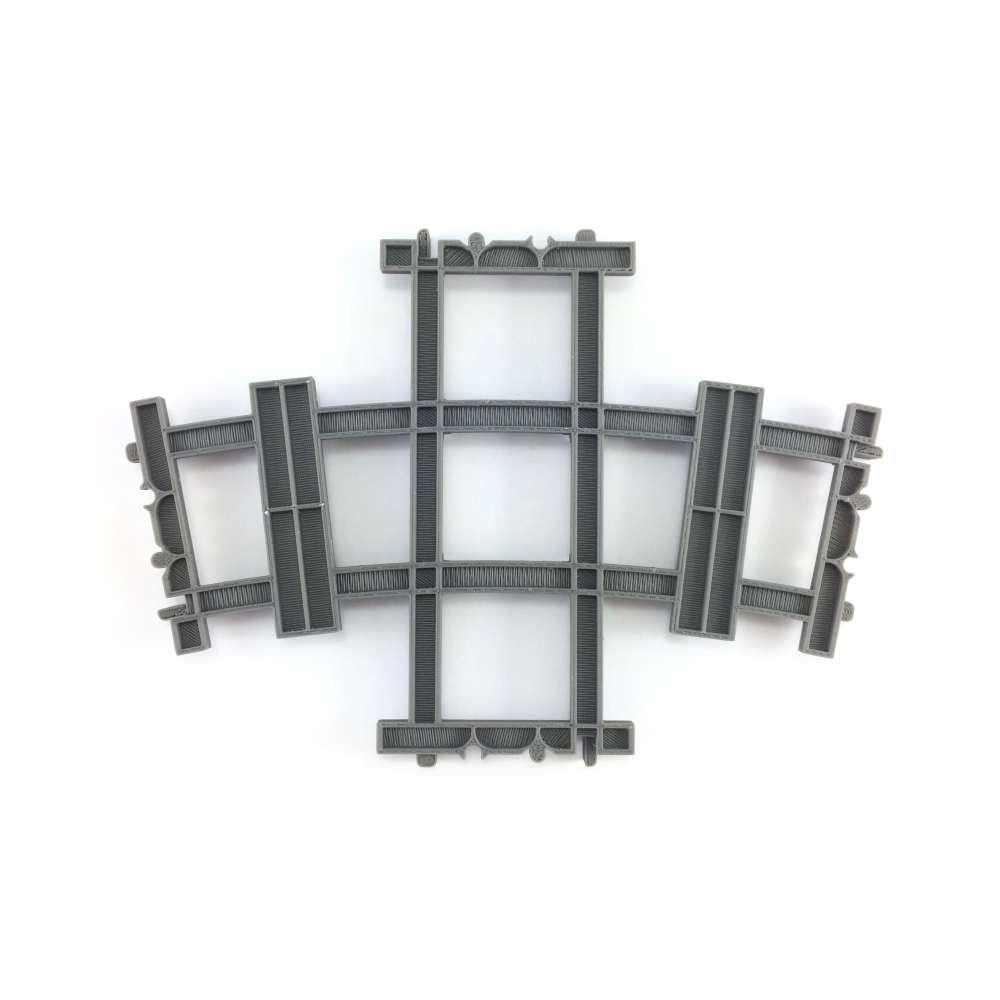 Dit is een zelfontworpen kruising waarbij een rechte rails en bocht elkaar kruisen. Deze versie heeft een bocht radius van R56.