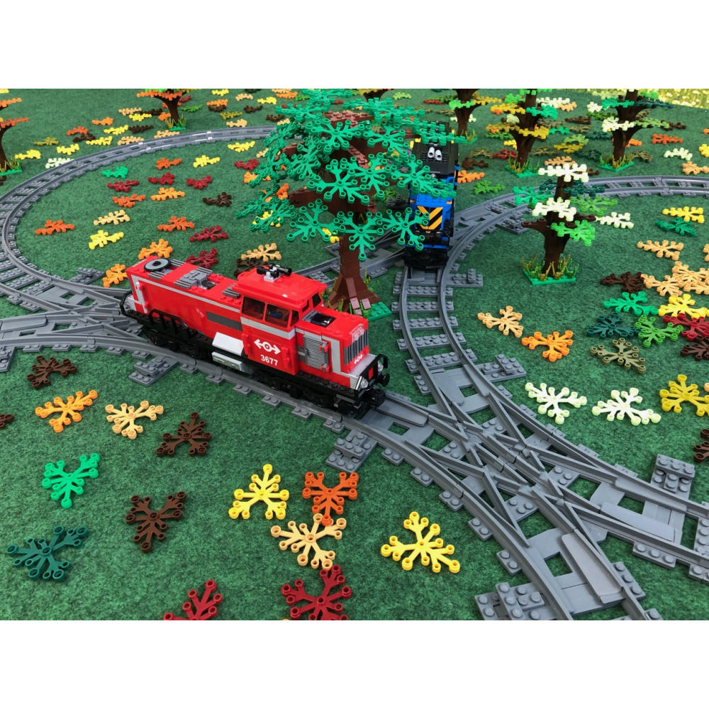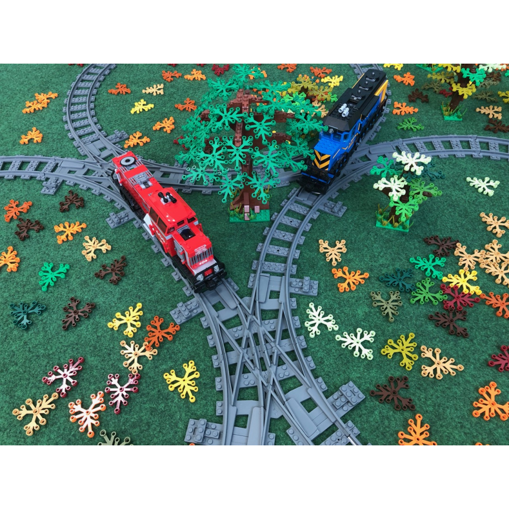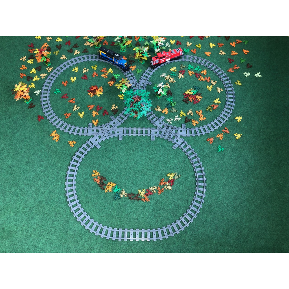 R40 is de afstand gemeten vanaf het midden van de cirkel tot aan het midden van de rails. Daarmee gebruik makende van de LEGO® stud als eenheid. Een LEGO® stud is 8mm(breedte en lengte van een 1x1 steen). De ruimte benodigd voor een volledige R40 cirkel kan uitgerekend worden middels de volgende formule: (40 + 4) * 2 * 8mm = 704mm = 0.7m.(R + 4) * 2 * 8mm