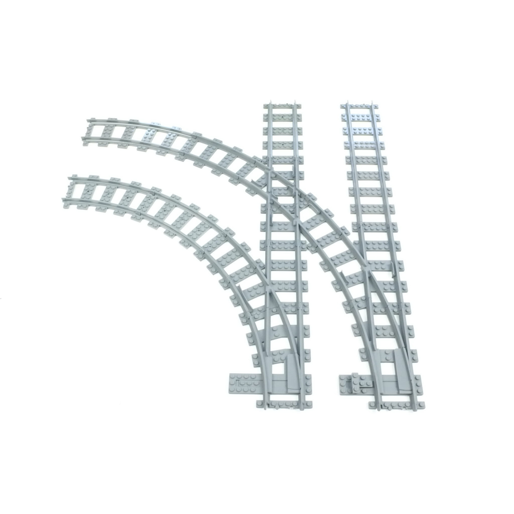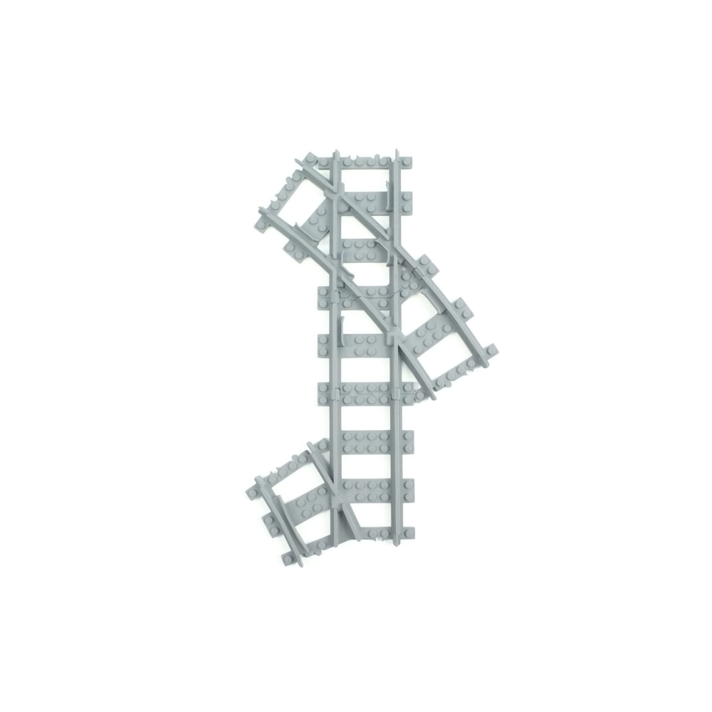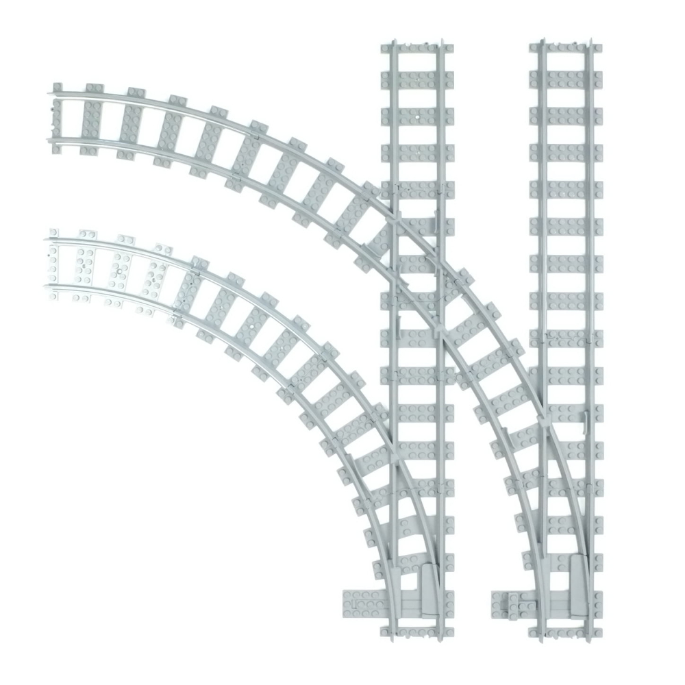 Het bijgevoegde onderdeel ten behoeve van de (apart verkrijgbare) Wissel R40 heeft een korter stuk rechte rails. Deze is 4 noppen korter. Dit is om de absolute geometrie te behouden zodat u overal netjes 8 noppen tussenruimte heeft.