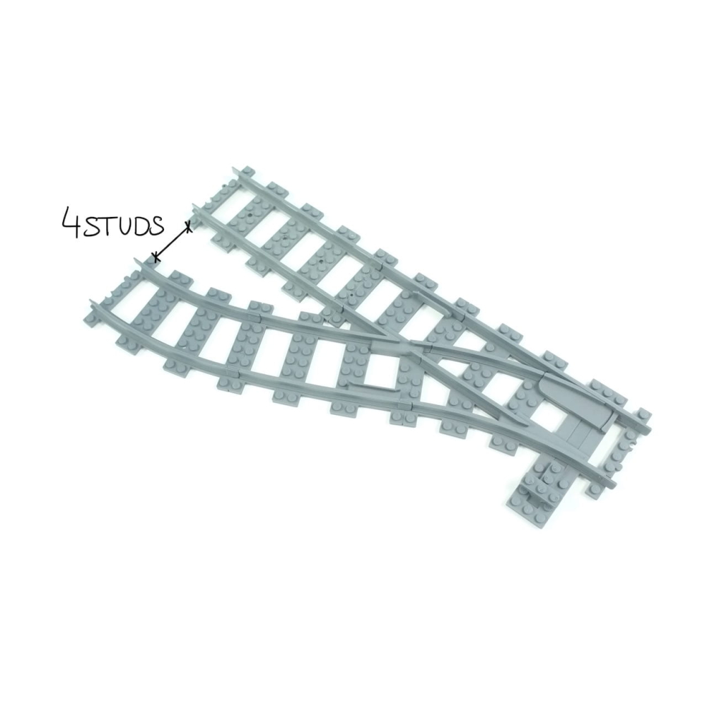 - twee parallelle sporen met 4 noppen ruimte ertussen