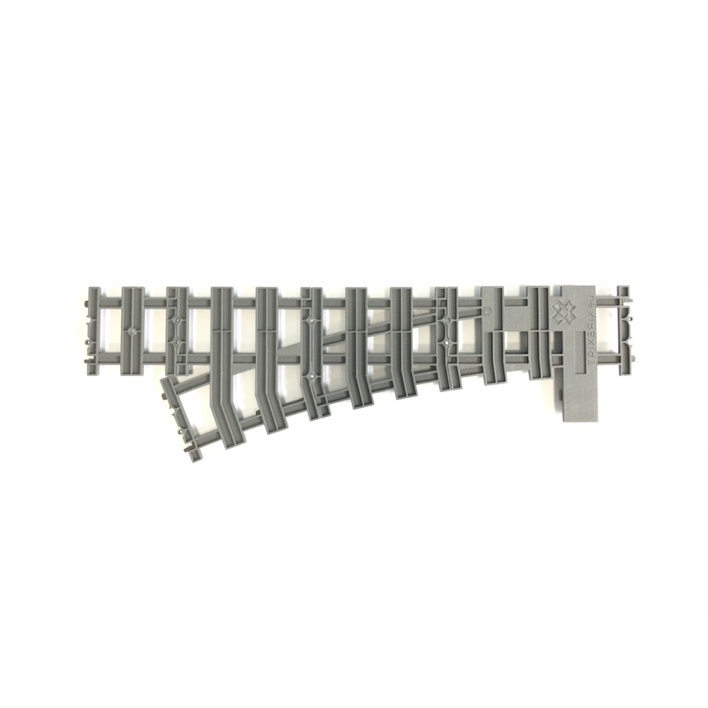 - combineer 2 wissels(linker versie) om een enkelspoor kruiswissel(crossover) te bouwen zoals te zien in de foto's, (2e wissel niet inbegrepen) deze zijn zonder extra onderdelen direct op elkaar aan te sluiten.