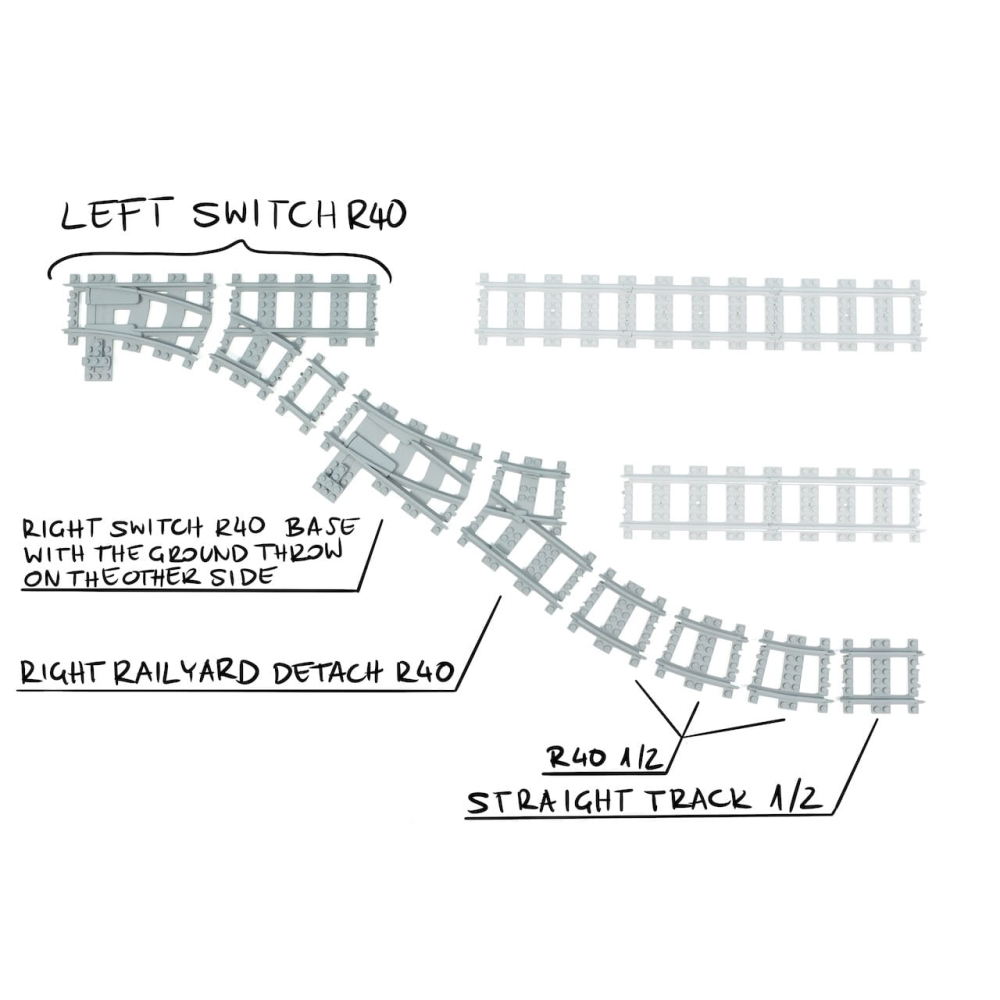 De R40 Railyard wissels zijn in de basis normale R40 wissels met de uitzondering dat het 'detach' part (waar de trein de wissel verlaat) een korter rechte stuk heeft en dat de wisselschakelaar aan de andere kant zit.