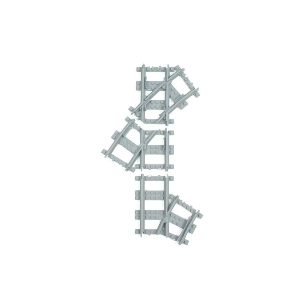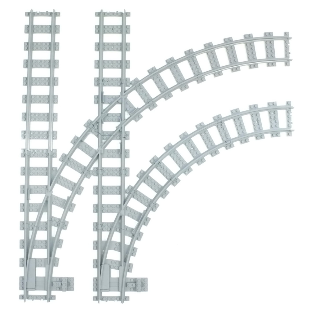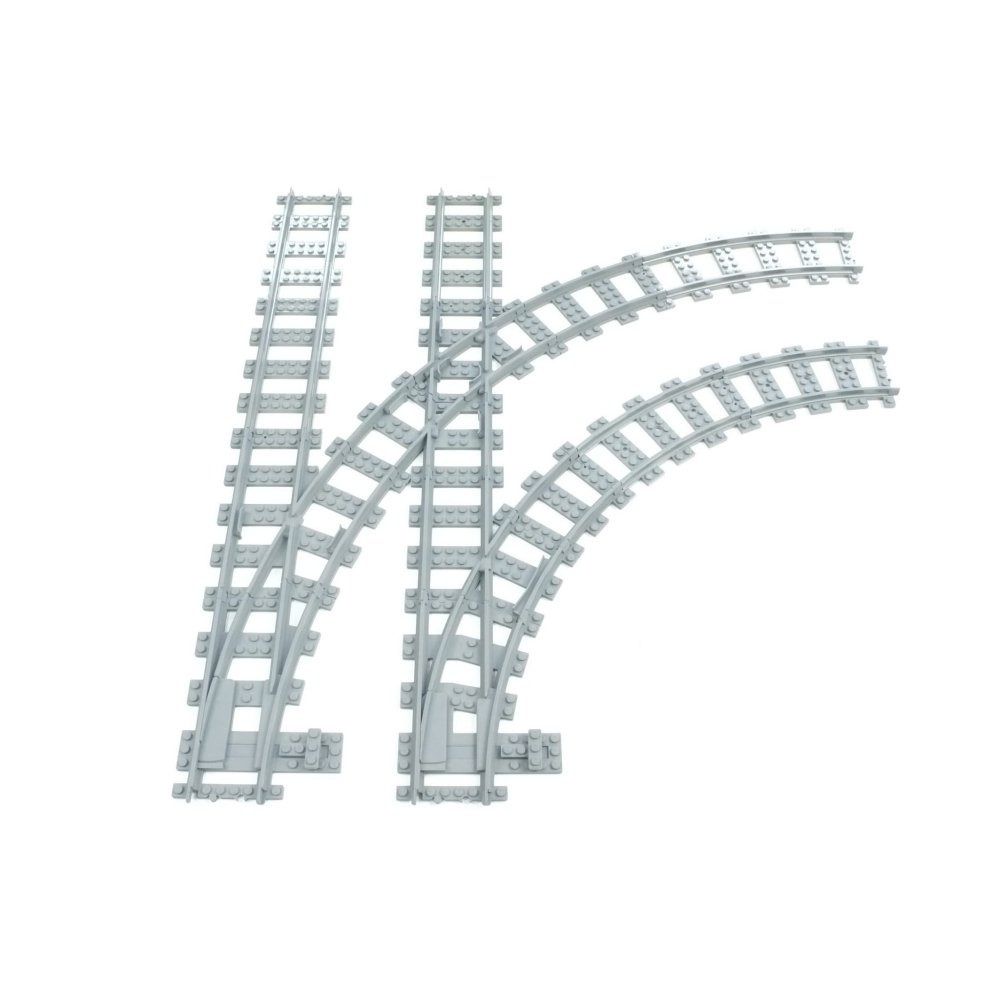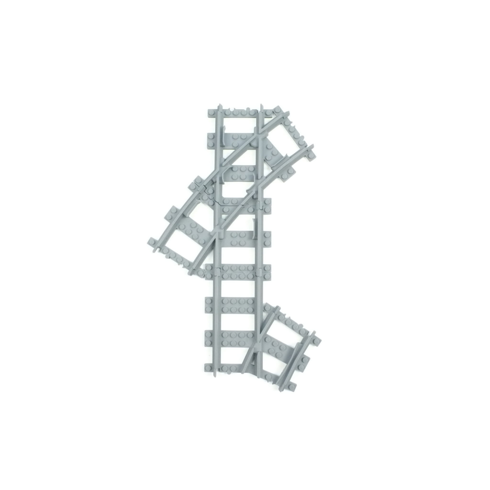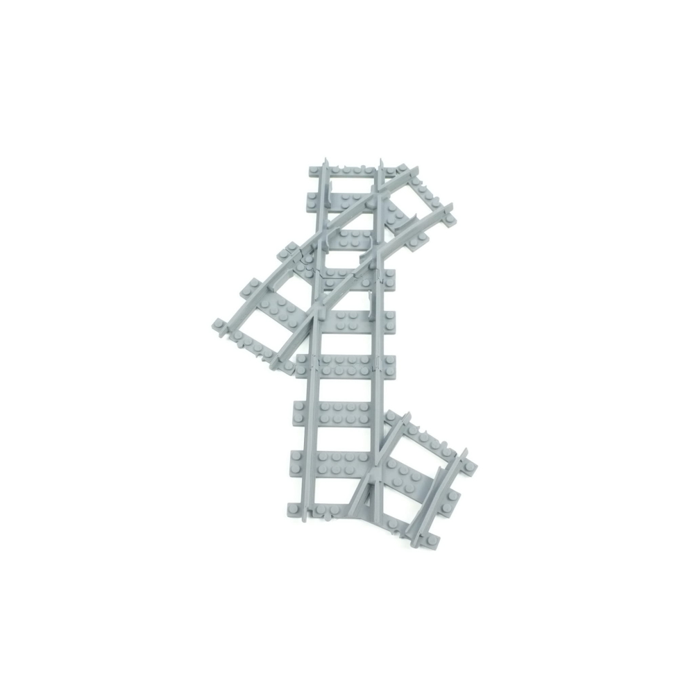Het bijgevoegde onderdeel ten behoeve van de (apart verkrijgbare) Wissel R40 heeft een korter stuk rechte rails. Deze is 4 noppen korter. Dit is om de absolute geometrie te behouden zodat u overal netjes 8 noppen tussenruimte heeft.